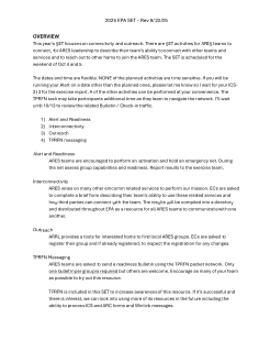 - Assessment of your interconnectivity. Including if you are active in Skywarn, NTS, TPRFN, ARDEN, Winlink, RACES, ACS, ServePA, REACT, CERT or other functions.